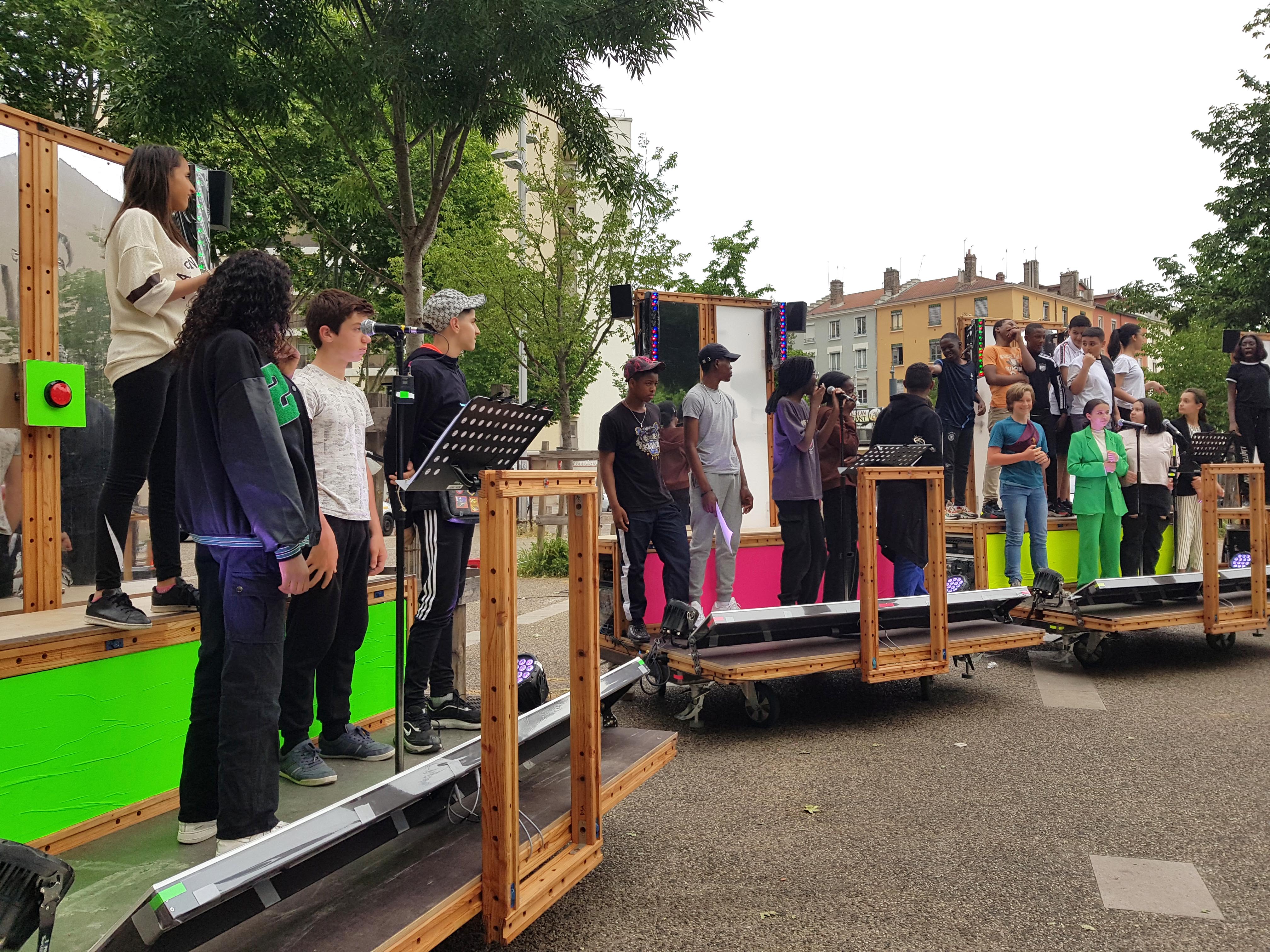 écrire sur qui ils sont, sur leurs aspirations. Un objet culturel sur la thématique de « l’archive du futur » qui offre aux élèves la possibilité de prendre place pleinement dans la ville et qui restitue aux publics,