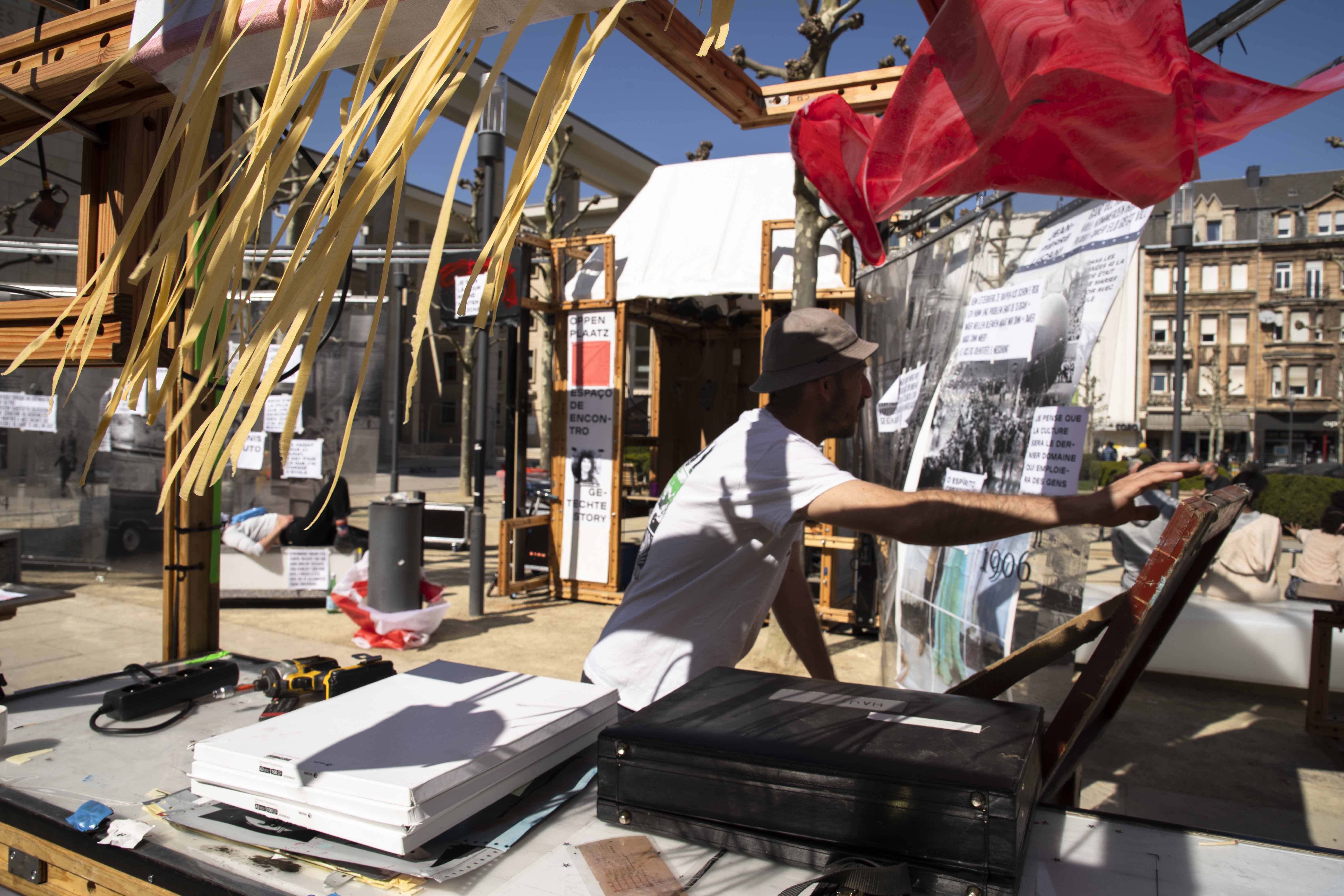 Installer un lieu culturel éphémère sur la place principale, qui accueille durant 3 semaines, un plateau radio, une scène ouverte, des ateliers de pratiques, des gouters et repas partagés, des soirées performances…